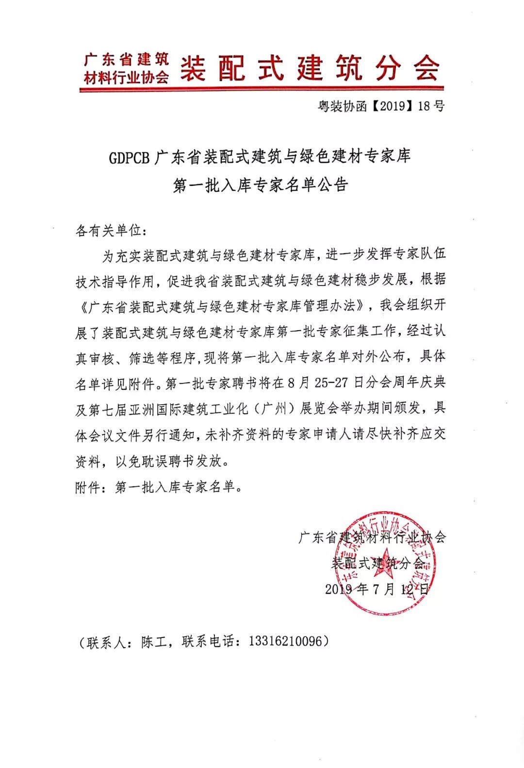 關(guān)于征集第二批“廣東省裝配式建筑與綠色建材專家?guī)鞂<摇钡耐ㄖ?/a> (2019-06-24)