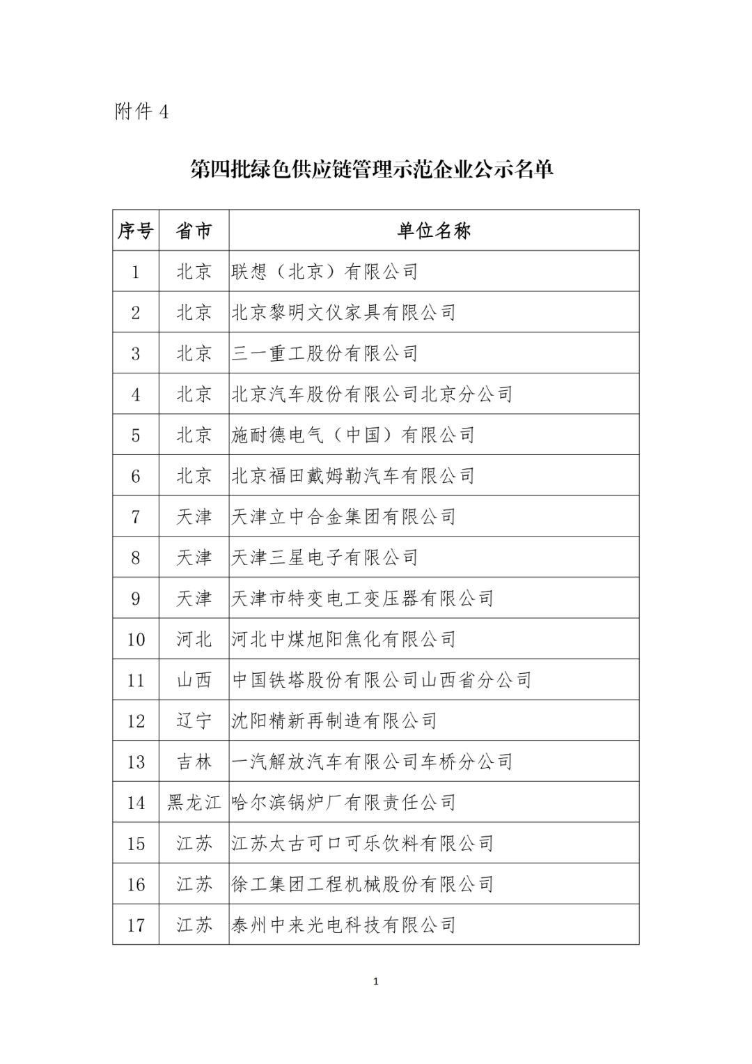 根據(jù)《工業(yè)和信息化部辦公廳關(guān)于開(kāi)展綠色制造體系建設(shè)的通知》(工信廳節(jié)函〔2016〕586號(hào))、《工業(yè)和信息化部辦公廳關(guān)于推薦第四批綠色制造名單的通知》(工信廳節(jié)函〔2019〕45號(hào))要求,現(xiàn)將擬入選第四批綠色制造名單進(jìn)行公示,請(qǐng)社會(huì)各界監(jiān)督。 公示時(shí)間:2019年7月18日 - 2019年8月7日 郵箱:jns@miit.gov.cn 電話:010-66013058 傳真:010-68205337 附件: 1.綠色工廠公示名單 2.綠色設(shè)計(jì)產(chǎn)品公示名單 3.綠色園區(qū)公示名單 4.綠色供應(yīng)鏈管理示范企業(yè)公示名單 工業(yè)和信息化部節(jié)能與綜合利用司 2019年7月17日 綠色工廠公示名單 綠色設(shè)計(jì)產(chǎn)品公示名單 綠色園區(qū)公示名單 綠色供應(yīng)鏈管理示范企業(yè)公示名單 來(lái)源:工信部官網(wǎng)