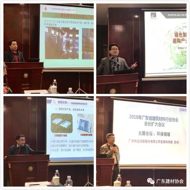 下午,由吳會(huì)長(zhǎng)主持召開了“廣東建材行業(yè)綠色發(fā)展現(xiàn)場(chǎng)交流會(huì)”。塔牌集團(tuán)副總經(jīng)理丘增海作《走綠色發(fā)展之路,創(chuàng)生態(tài)績(jī)優(yōu)企業(yè)——建設(shè)綠色生態(tài)水泥工廠經(jīng)驗(yàn)介紹》、蒙娜麗莎集團(tuán)股份有限公司董事張旗康作《綠色制造是中國(guó)建陶產(chǎn)業(yè)的生命線》、南玻集團(tuán)銷售總監(jiān)鄒青作《創(chuàng)新未來(lái),綠色發(fā)展》、廣東科達(dá)潔能公司首席科學(xué)家武楨還就環(huán)保等話題分別做了主題分享,精彩紛呈。