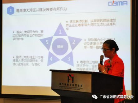 2019年7月11日至13日,廣東省大建材產業(yè)聯(lián)盟組團赴澳門出席粵港澳大灣區(qū)國際建筑材料研討會、粵港澳大灣區(qū)環(huán)保建設總會成立大會等活動,廣東省裝配式建筑分會作為粵港澳大灣區(qū)環(huán)保建設總會發(fā)起單位之一,由羅燕秘書長代表分會參與,對接行業(yè)資源,共商灣區(qū)建筑建材行業(yè)的深度合作。 本次活動得到澳門投資貿易促進局、澳門生產力暨科技轉移中心的支持,由澳門建材企業(yè)商會主辦,廣東省大建材產業(yè)聯(lián)盟、英國特許建筑工程師學會、粵港澳大灣區(qū)城市建筑學會(香港)、綠色環(huán)境學會、澳門綠色環(huán)境保護協(xié)會、澳門餐飲油煙處理專業(yè)協(xié)會、珠海市建筑材料行業(yè)協(xié)會、珠海市網(wǎng)絡行業(yè)協(xié)會等協(xié)辦。 廣東省大建材產業(yè)聯(lián)盟在團長陳環(huán)會長的帶隊下,攜盟成員廣東省建筑材料行業(yè)協(xié)會、廣東陶瓷協(xié)會、廣東省建筑防水材料行業(yè)協(xié)會、廣東省涂料行業(yè)協(xié)會、廣東省電線電纜行業(yè)協(xié)會、廣東省砂石分會、廣東省裝配式建筑分會、惠州市防水行業(yè)協(xié)會、廣東省碳酸鈣鎂分會等行業(yè)機構到會,廣東省建筑材料行業(yè)協(xié)會創(chuàng)會會長吳一岳、顧問梁榮英女士、秘書長劉蓮香以及盟成員相關領導出席。 7月11日下午,廣東大建材產業(yè)聯(lián)盟代表團馬不停蹄趕到了澳門建材企業(yè)商會拜訪交流,得到澳門建材企業(yè)商會會長陳俊杰、理事長溫華芬女士熱情接待。雙方就加強粵港澳三地的大建材合作發(fā)展、標準互認、國際推廣、資源共享等進行了討論交流,期待攜手共建粵港澳大灣區(qū)合作平臺。 粵港澳大灣區(qū)國際建筑材料研討會會議于12日全天在澳門貿易投資促進局會議廳舉行,多名嘉賓作主題演講,并舉行了粵港澳大灣區(qū)環(huán)保建設總會成立儀式。中聯(lián)辦經(jīng)濟部徐俊副部長、司晨處長,全國人大代表劉藝良先生,澳門貿促局、生產力暨科技轉移中心、澳門環(huán)境保護局等相關部門及粵港澳三地建筑建材協(xié)會、商會領導出席,澳門建材商會會長陳俊杰,廣東大建材聯(lián)盟代表團團長、廣東省建材協(xié)會常務副會長陳環(huán)分別致詞。劉蓮香常務副會長作為廣東省代表發(fā)表了主題為“大灣區(qū)共建發(fā)展”的演說。 廣東大建材聯(lián)盟代表團團長、廣東省建材協(xié)會常務副會長陳環(huán)致詞 廣東省建筑材料行業(yè)協(xié)會秘書長、廣東省裝配式建筑分會常務副會長劉蓮香女士作為廣東省代表發(fā)言 此次澳門行,主辦方還安排與會人員拜訪了澳門貿易投資促進局、澳門品質保證局、觀光港珠澳大橋以及考察新科技輕質混疑土公司、西卡公司等活動。