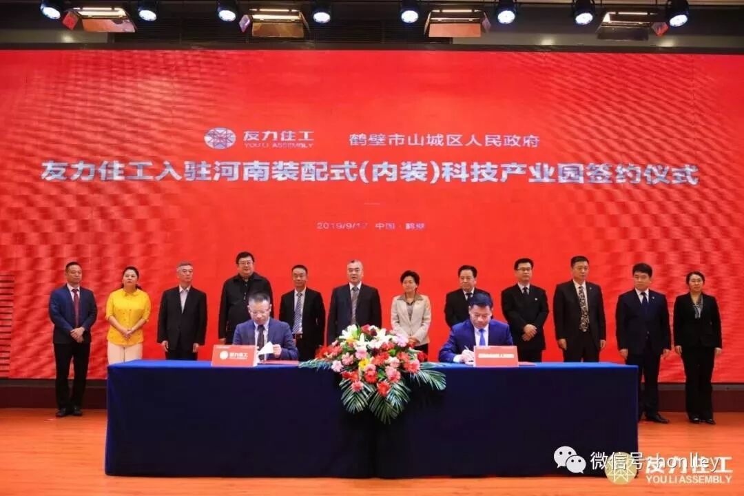 河南省鶴壁市山城區(qū)人民政府與佛山友力控股有限公司簽訂《裝配式(內(nèi)裝)項目合同書》,由鶴壁市山城區(qū)區(qū)長楊建強先生與佛山友力控股董事長兼廣州鴻力創(chuàng)始人陶運喜先生共同簽約。