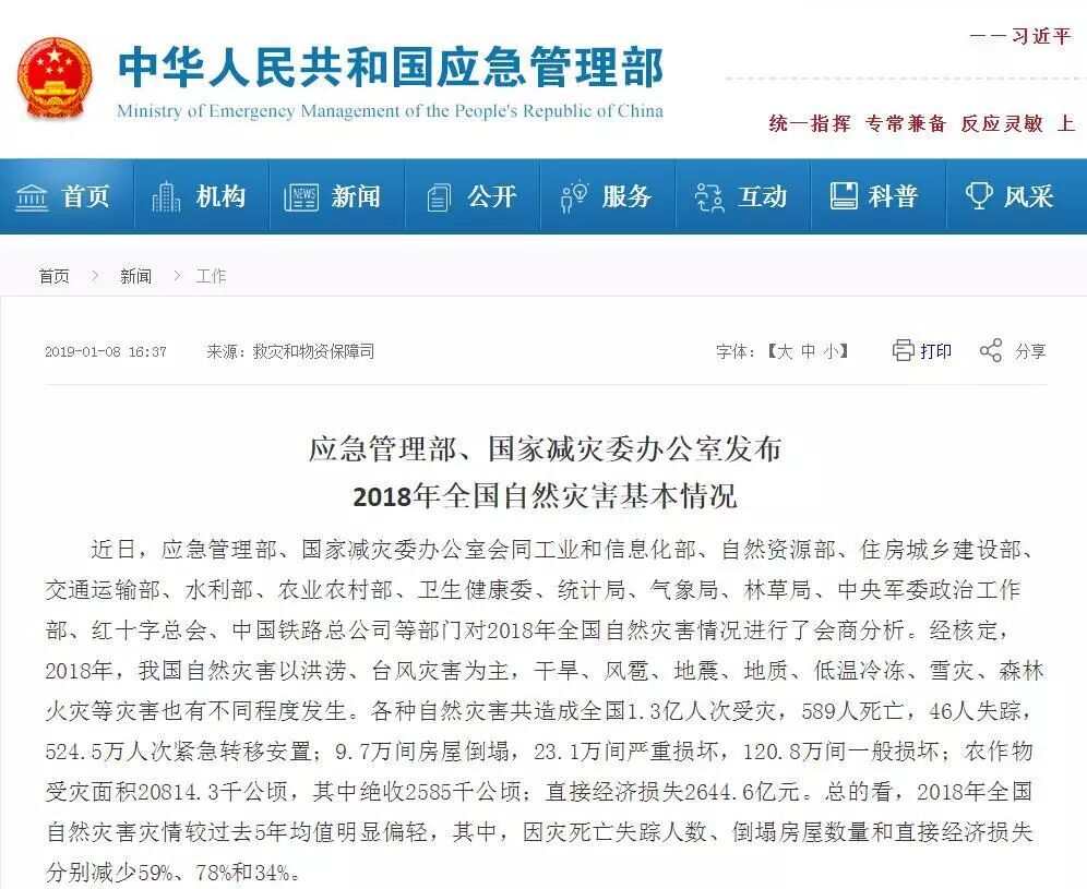 近日,應(yīng)急管理部、國家減災(zāi)委辦公室發(fā)布2018年全國自然災(zāi)害基本情況。