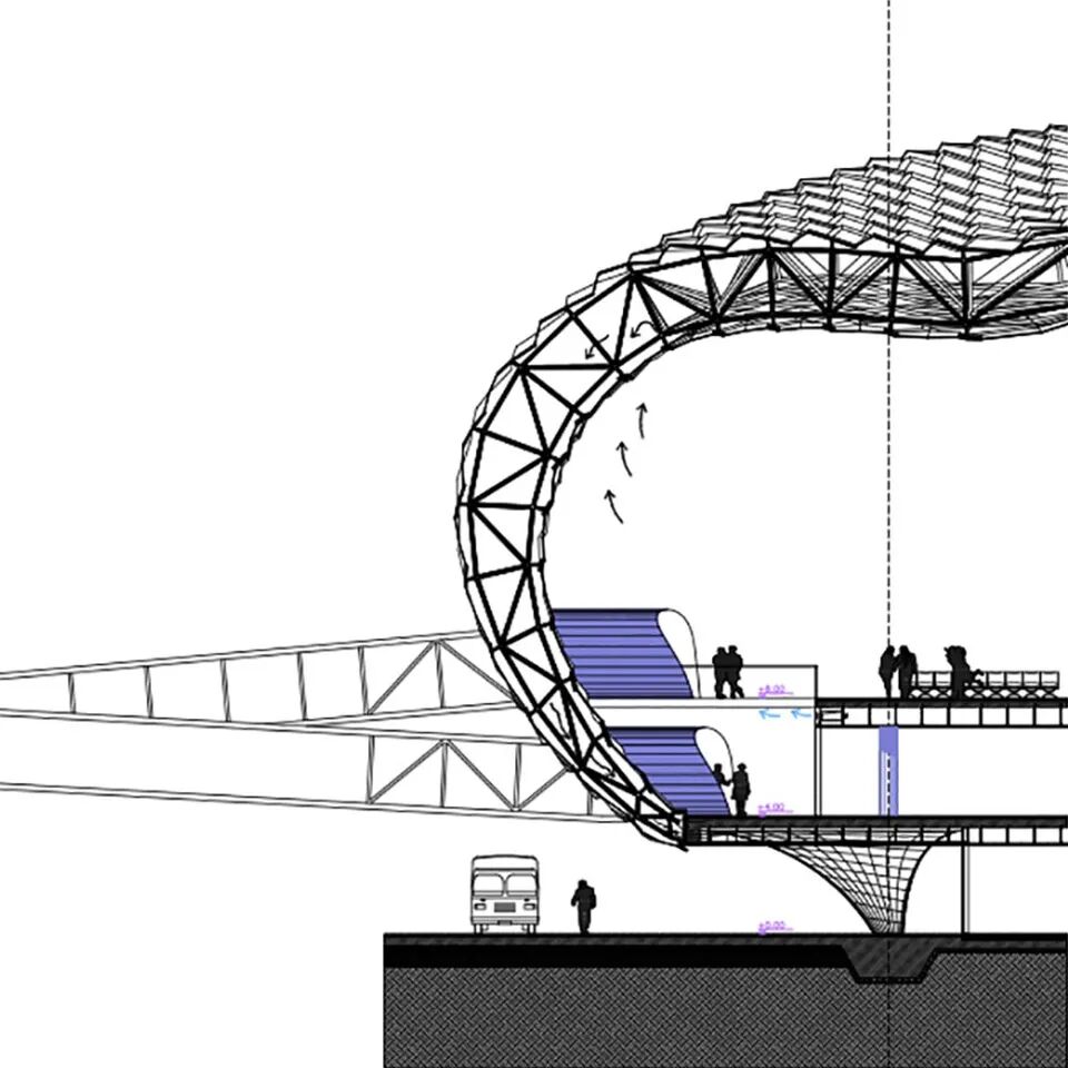 The concourse is the airport key-area and is made up of three levels. Each level is dedicated to three independent functions: departures, arrivals and services. Its tubular shape chases the idea of motion. The “cross” is the intersection point where the 3 levels of the concourse are vertically connected to create full-height voids which allow natural light to filter from the highest level down to the waiting room set in the node on level 0.