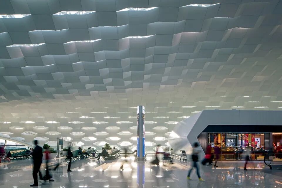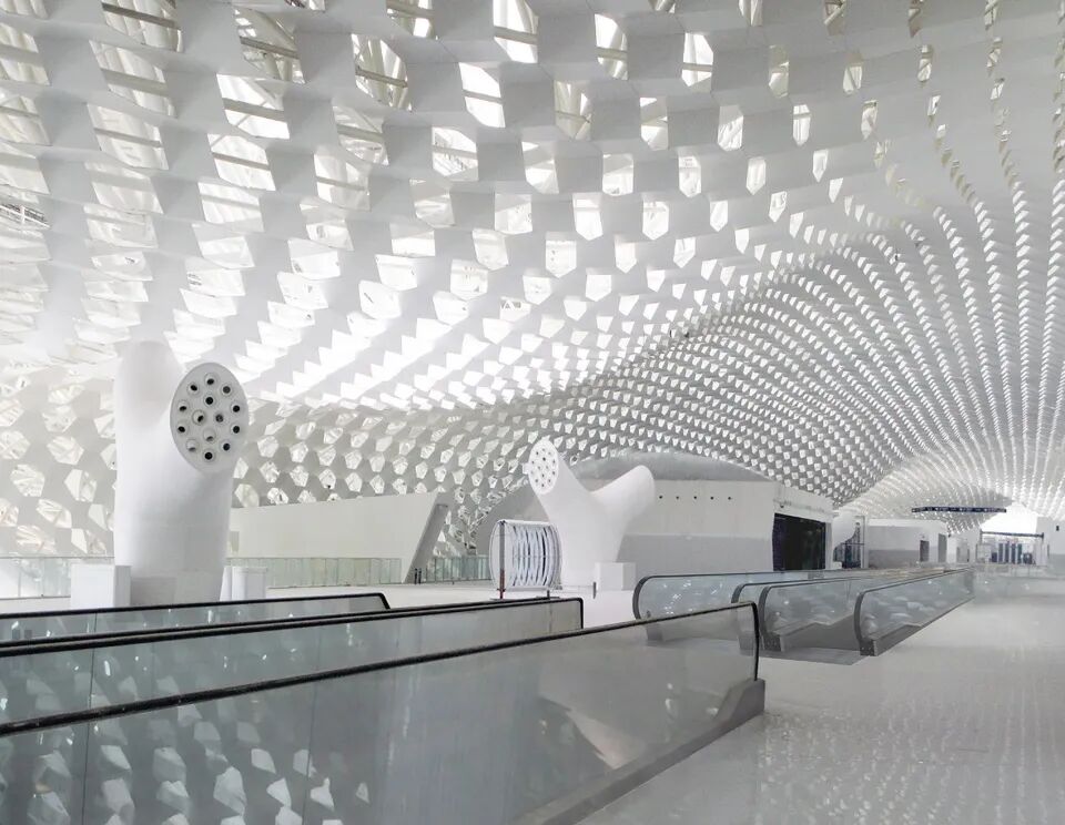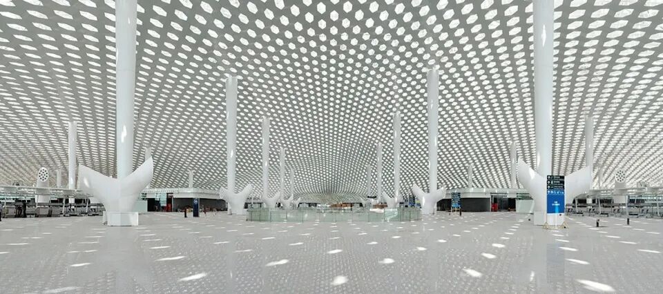 深圳寶安國際機場最初的概念設計靈感源自深海蝠鲼——一種可以根據(jù)呼吸改變自身形狀的魚類。經(jīng)過一系列的深化逐漸演變成一只飛鳥,來象征一段旅程帶來的愉悅情感與飛行幻想。